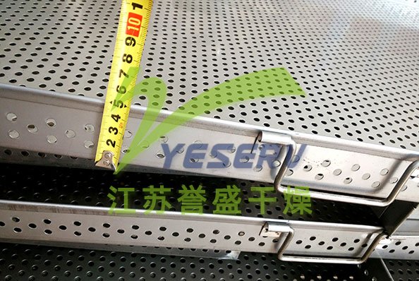 - 打孔盤:通透性一般,適用于顆粒狀物料;為了增加透氣性可沖孔,孔徑1-10mm供用戶選擇(側(cè)面不可打孔,影響結(jié)構(gòu)強(qiáng)度),制作工藝有卷邊盤,直邊盤,新版GMP卷直邊。