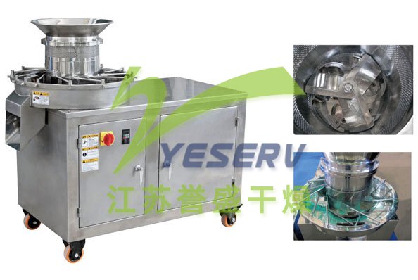 - 在旋轉(zhuǎn)式制粒機(jī)上裝上特殊的高效切割篩網(wǎng)時(shí),它可以打碎結(jié)塊的物料。